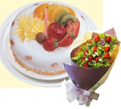 商品簡(jiǎn)介:9支紅玫瑰,8寸鮮奶水果蛋糕。