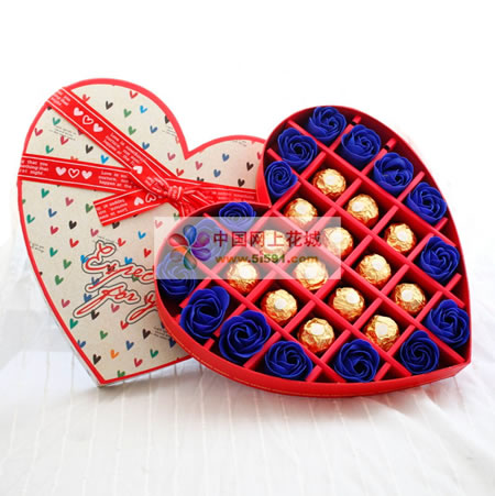 商品簡介:桃心禮盒16朵藍色香皂花14顆費列羅禮盒寬30cm,直徑30cm左右.