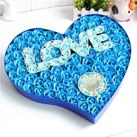 材料包裝: 香皂花:藍色,100朵love+手鏈香皂花禮盒;尺寸:約40.5*36*4.8CM
