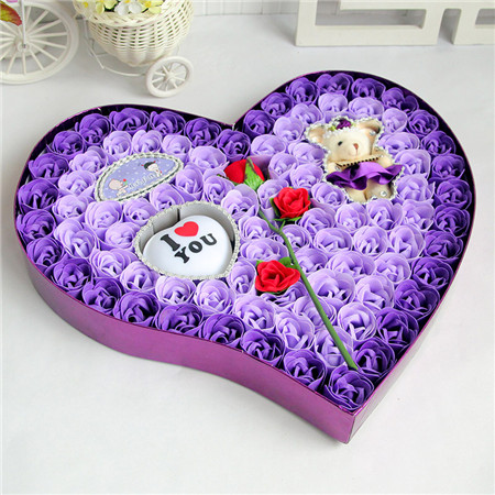 材料包裝: 香皂花:紫色;92朵香皂花+1枝花+小熊+燈;尺寸:40*38*5com;