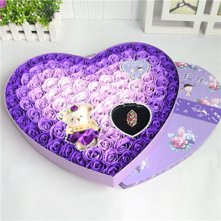 材料包裝: 香皂花:紫色;92朵香皂花+戒指+小熊;尺寸:40*38*5com;