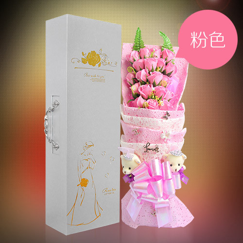材料包裝: 19朵粉色香皂花花束 高檔禮盒包裝。