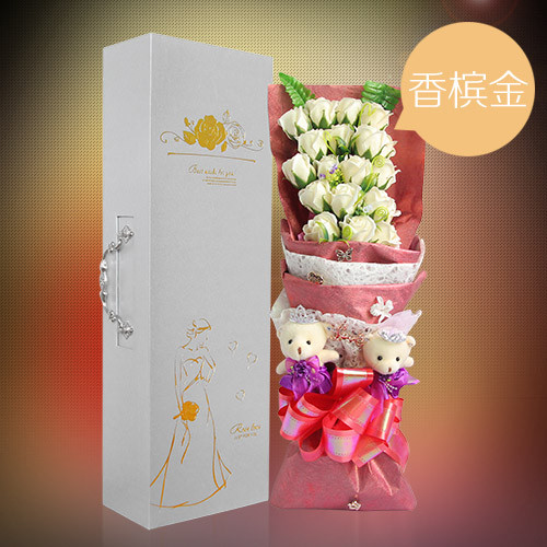 材料包裝: 19朵香檳色香皂花花束 高檔禮盒包裝。