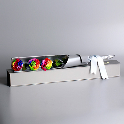 材料包裝: 3支七彩香皂花,9*9*73CM禮盒裝