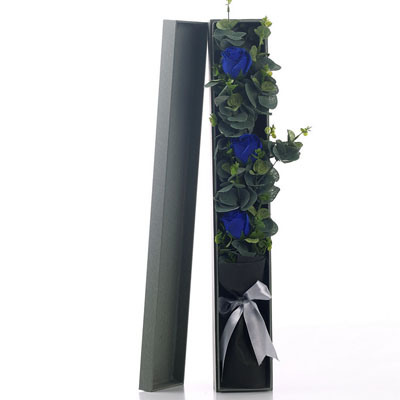 商品簡介:產品簡稱:3朵藍色香皂花長條盒花束,尺寸:尺寸:65*10*8CM
