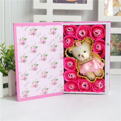 材料包裝: 10朵粉色肥皂花。書本桃李滿天下+小熊