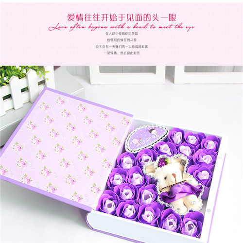 商品簡介:18朵紫色香皂花禮盒。小熊書本款教師節快樂