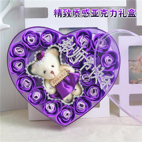 商品簡介:香皂花老師款紫色小熊 心型禮盒:18朵;長20.5*寬18.5*高4.5CM;