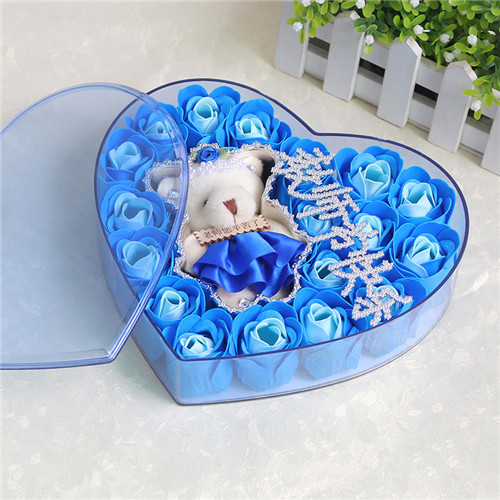 商品簡介:香皂花老師款藍色小熊 心型禮盒:18朵;長20.5*寬18.5*高4.5CM;