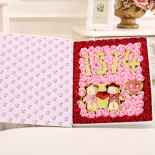 材料包裝: 香皂花:99朵書本1314+牽手熊 紅色禮盒