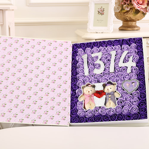 材料包裝: 香皂花:99朵書本1314+牽手熊 紫色禮盒