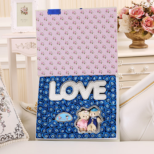 材料包裝: 香皂花:99朵書本橫版LOVE+抱熊 藍色禮盒