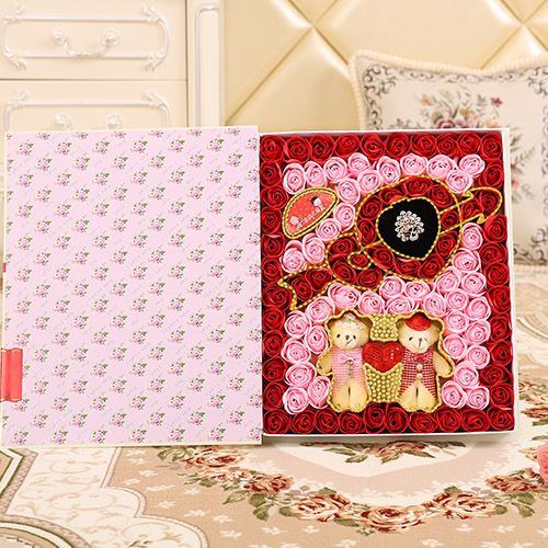 材料包裝: 香皂花:99朵書本一箭穿心+牽手熊 紅色