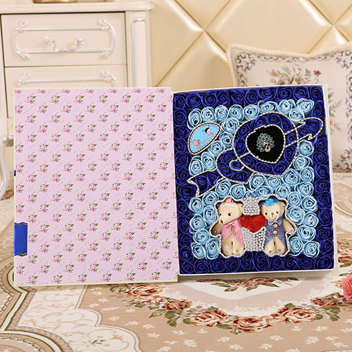 材料包裝: 香皂花:99朵書本一箭穿心+牽手熊 藍(lán)色