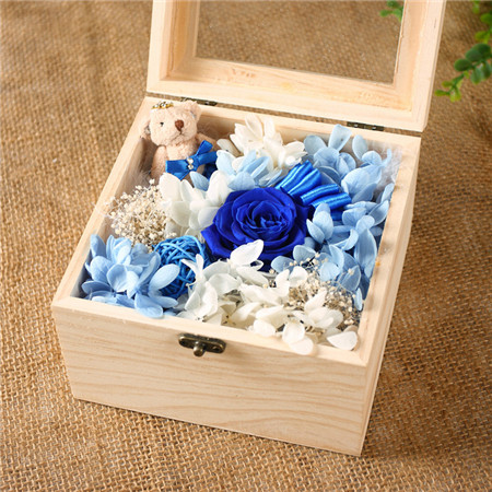 材料包裝: 保鮮花 深藍(lán) 1花+1熊 木盒裝