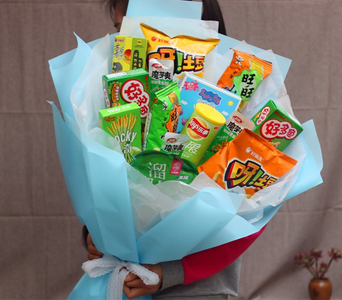 商品簡(jiǎn)介:材料:土豆2袋、衛(wèi)龍魔芋爽3袋、旺旺小小酥2袋、好多魚2盒、pocky曲奇1盒、薯愿薯?xiàng)l1盒、小豬佩奇棒棒餅干1盒、溜溜梅1袋,包裝:內(nèi)襯白色雪梨紙,外層藍(lán)色韓素紙圓形包裝,白色蕾絲帶束扎