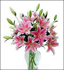 商品簡介:[材 料] 6枝昆明空運A級粉色香水百合 [包 裝] 瓶插:采用高檔透明玻璃花瓶設計