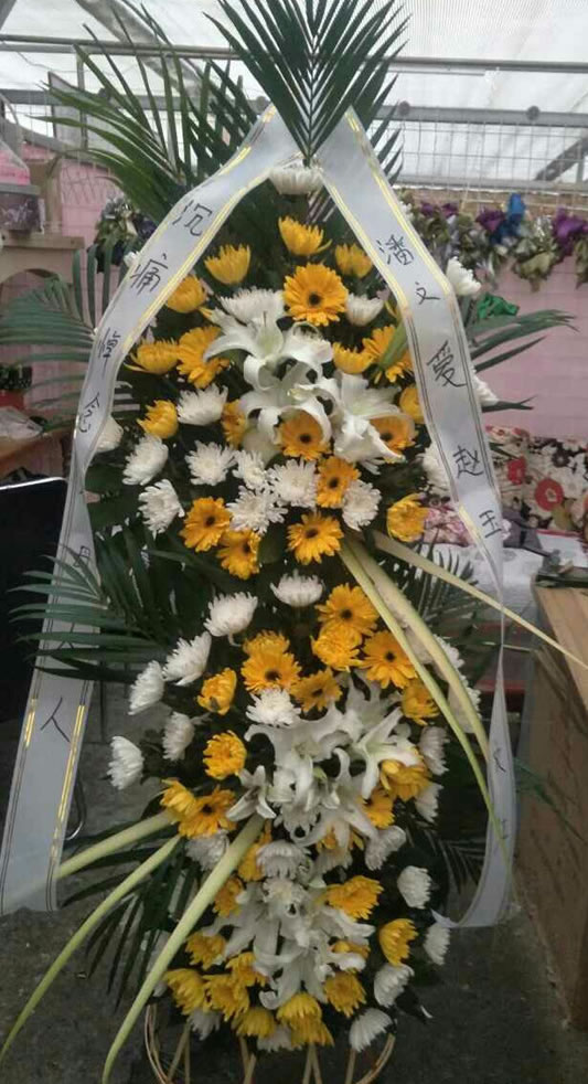 商品簡介:菊花、太陽花、百合綠葉適量,按圖訂制,規格:高約為1.8米左右
