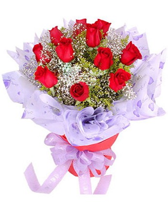 商品簡介:紅玫瑰11枝 滿天星 綠葉 商品包裝:皺紋紙圓形包裝