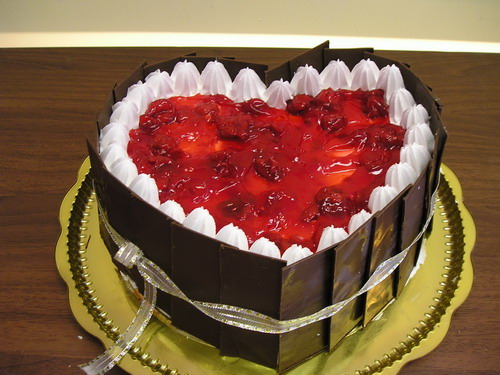商品簡介:心形鮮奶蛋糕 紅色果醬 巧克力點綴