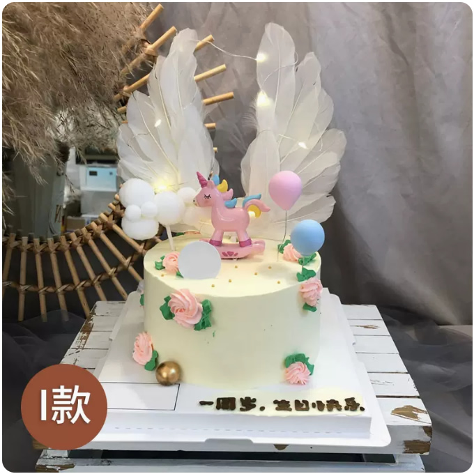 材料包裝: 網紅獨角獸生日蛋糕創意定制抖音ins小清新蛋糕兒童