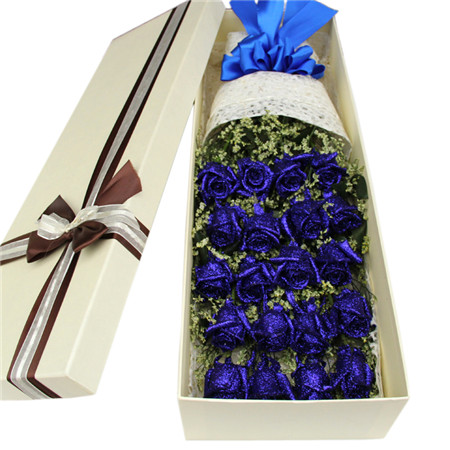材料包裝: 21支藍色妖姬,情人草搭配,禮盒包裝