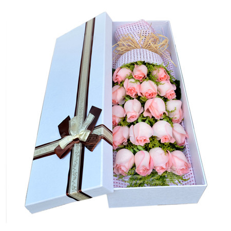 材料包裝: 19支粉玫瑰黃鶯搭配 禮盒包裝