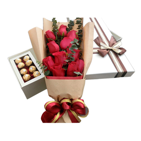 材料包裝: 11朵紅玫瑰,黃鶯綠葉,精美禮盒 精美巧克力一盒